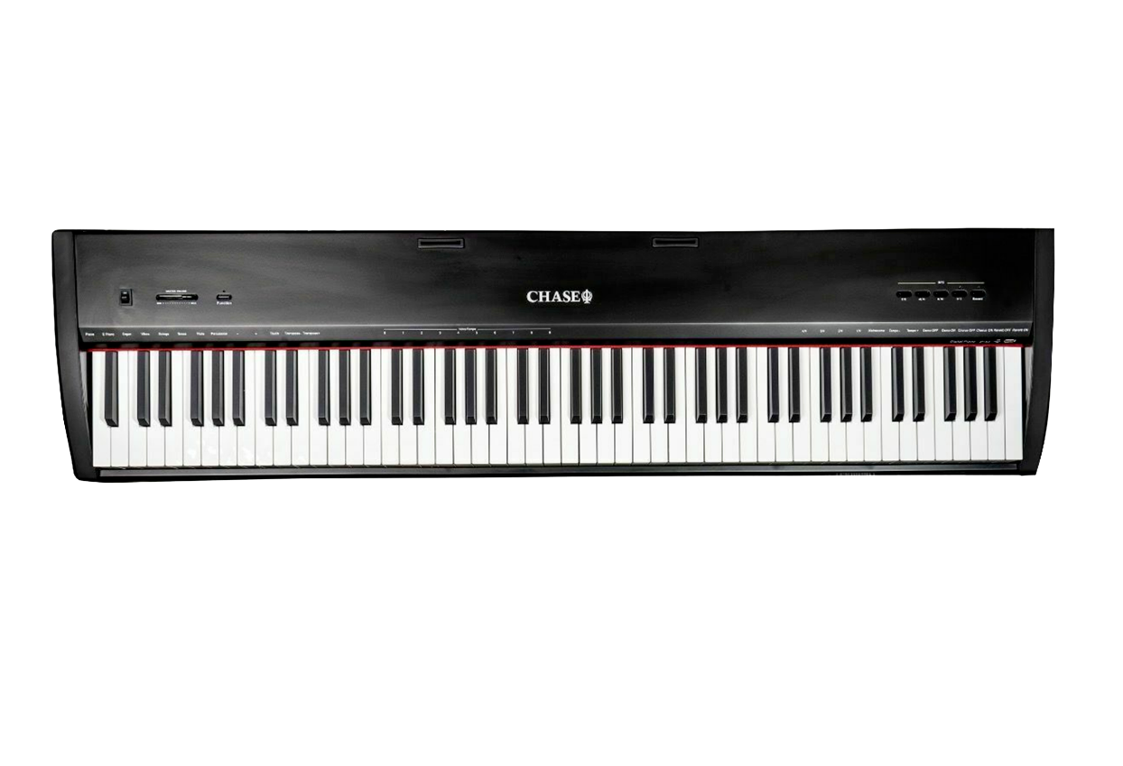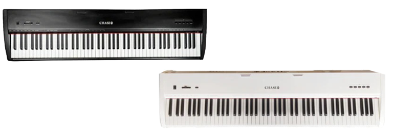 Chase P-51 Digital Piano Bundle In White or Black With Wooden Stand & Pedal Board With Three Pedals - Sustain Pedal, Sostenuto Pedal & Soft Pedal - Piano Bench, Stereo Headphones, Tutorial Book, DVD/CD-Watch The Demo Video